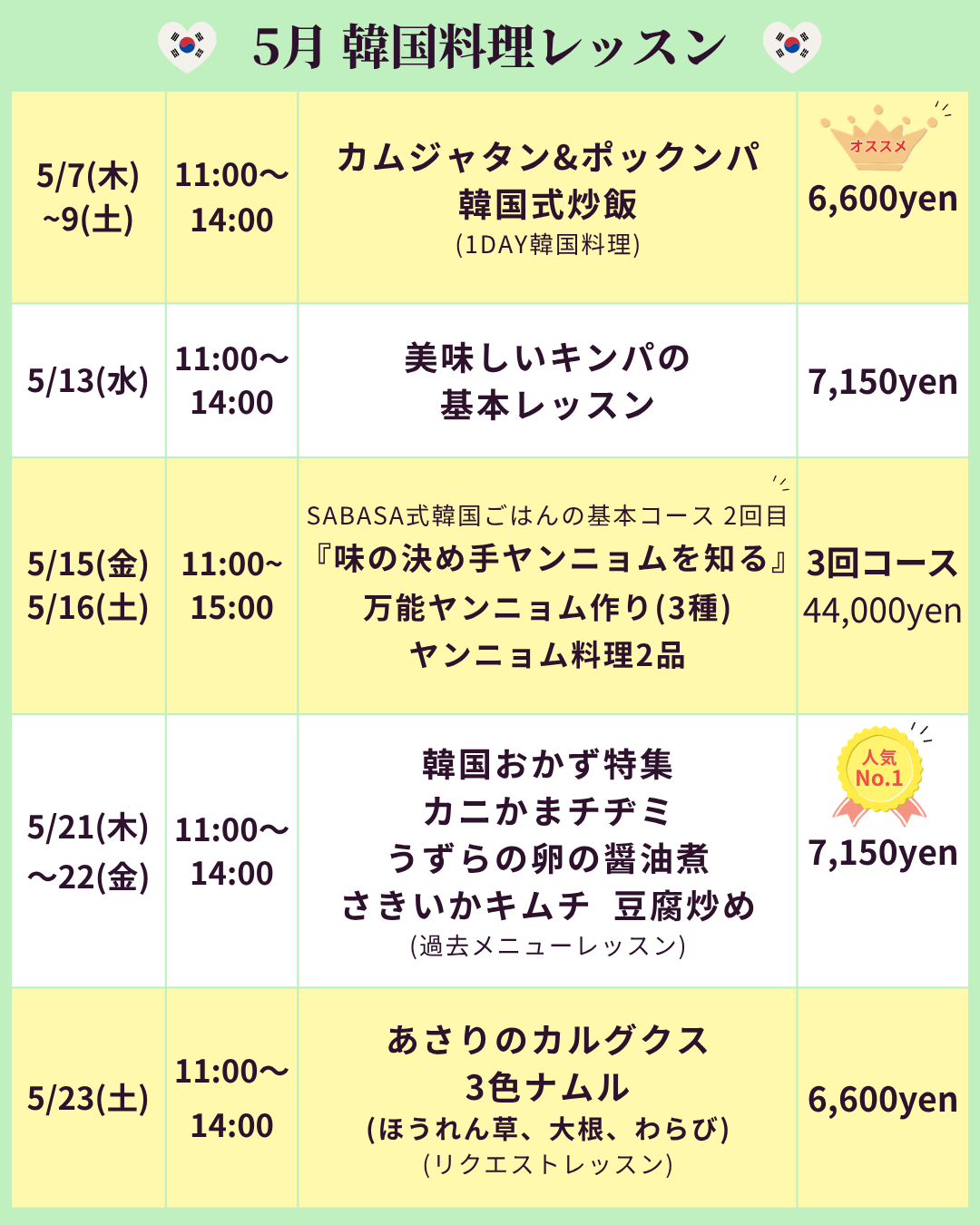 ようこそ、SABASA KOREAN CLASSの公式ホームページへ。